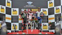 Sylvain Guintoli, 4th at the flag, managed to extend his leadership in the points up to twelve points, as his main rival for the title Tom Sykes ended up 11th behind BMW Motorrad GoldBet duo of Marco Melandri and Chaz Davies. Guintoli was able to defend his position from fellow Frenchmen Loris Baz and Jules Cluzel, both able to stay with the front runners and to battle for the podium.